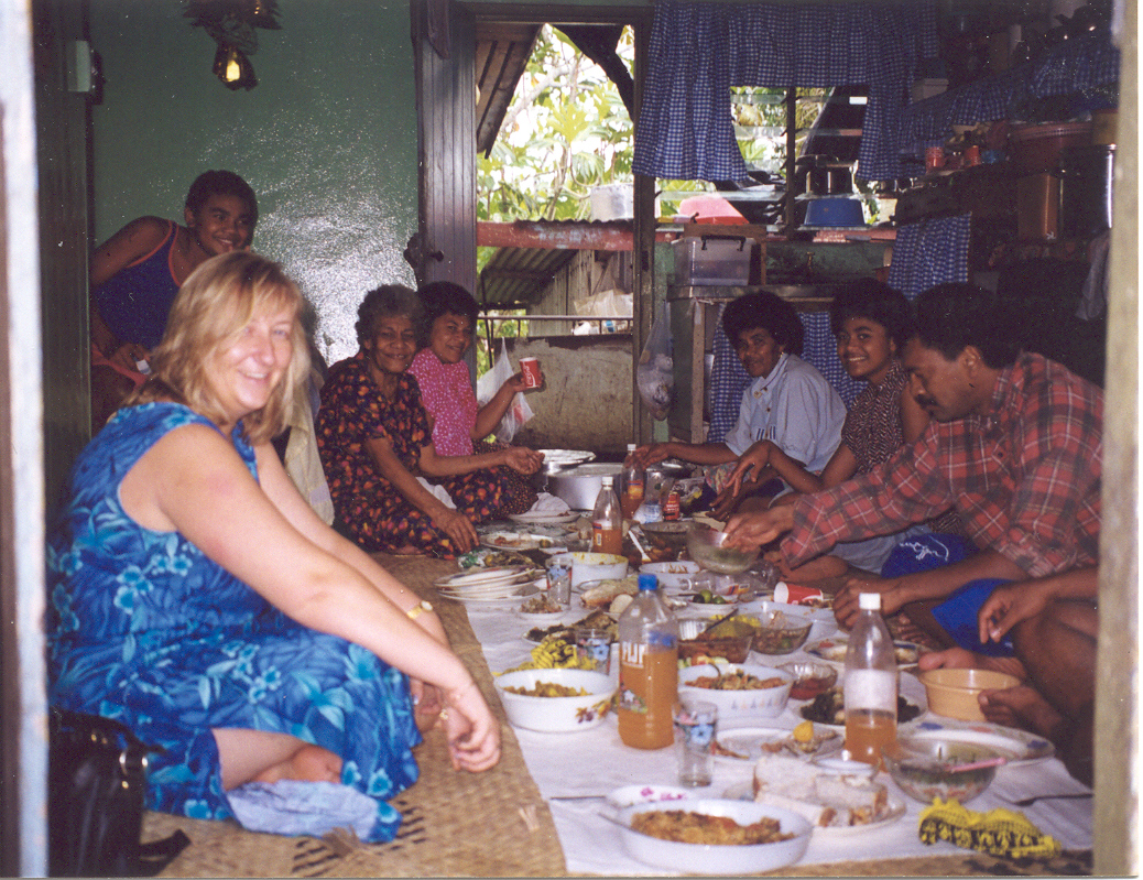 And lastly one of Mum being treated like a Queen at a party they held for Mum and Dad, as they greatly cherish and respect their elders – something else we could all learn from them, as that seems to be disappearing in our modern society! Mum and Dad hadn’t met them before, so I promised to drive over from Nadi to Suva to introduce them, and they threw a party in their honour. Mum loved it all, but Dad was bored stiff, as for the first time they didn’t bring their guitars … poor Dad – but Mum and I adored it all and lapped it up!! The lei she’s wearing around her neck is called a “salusalu” and is traditional in the part of Fiji they come from, and they made it especially for Mum, as well as some exquisite woven bags … I should take photos of them next time I go home, they’re gorgeous!
