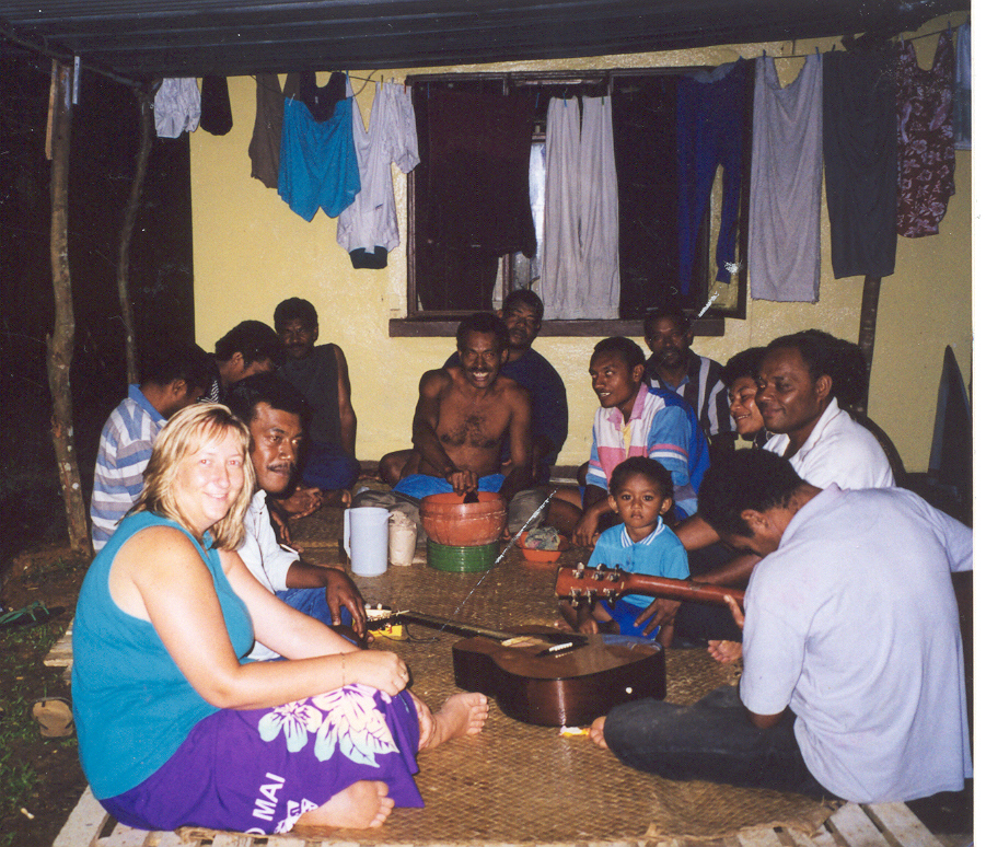 Also, sitting outside my temporary home having a kava party with the boys … the guitars were playing well into the early hours of the morning (I think I eventually slunk off at 3am and it was still going strong) – I don’t know how they can drink so much kava, it’s dreadful stuff! The only time I’ll drink a few is when they’ve thrown a party in my honour, and I’ll do it as a sign of respect to them, but it’s downright awful!