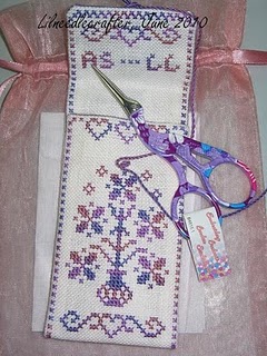 The only other news is that my Scissor Pocket Exchange arrived safely at its destination during the week, and thankfully Lillie likes it, which is the important thing 🙂 It was supposed to be a no-extras exchange (love those exchanges), but I couldn’t resist adding a little pair of scissors that I’d bought at the last craft fair we went to, which I used as my basis to choose a thread from my stash to match. I didn’t think to take a photo of the inside flap, where I stitched both our initials, so I’ve borrowed one of Lillie’s photos (hope she doesn’t mind).