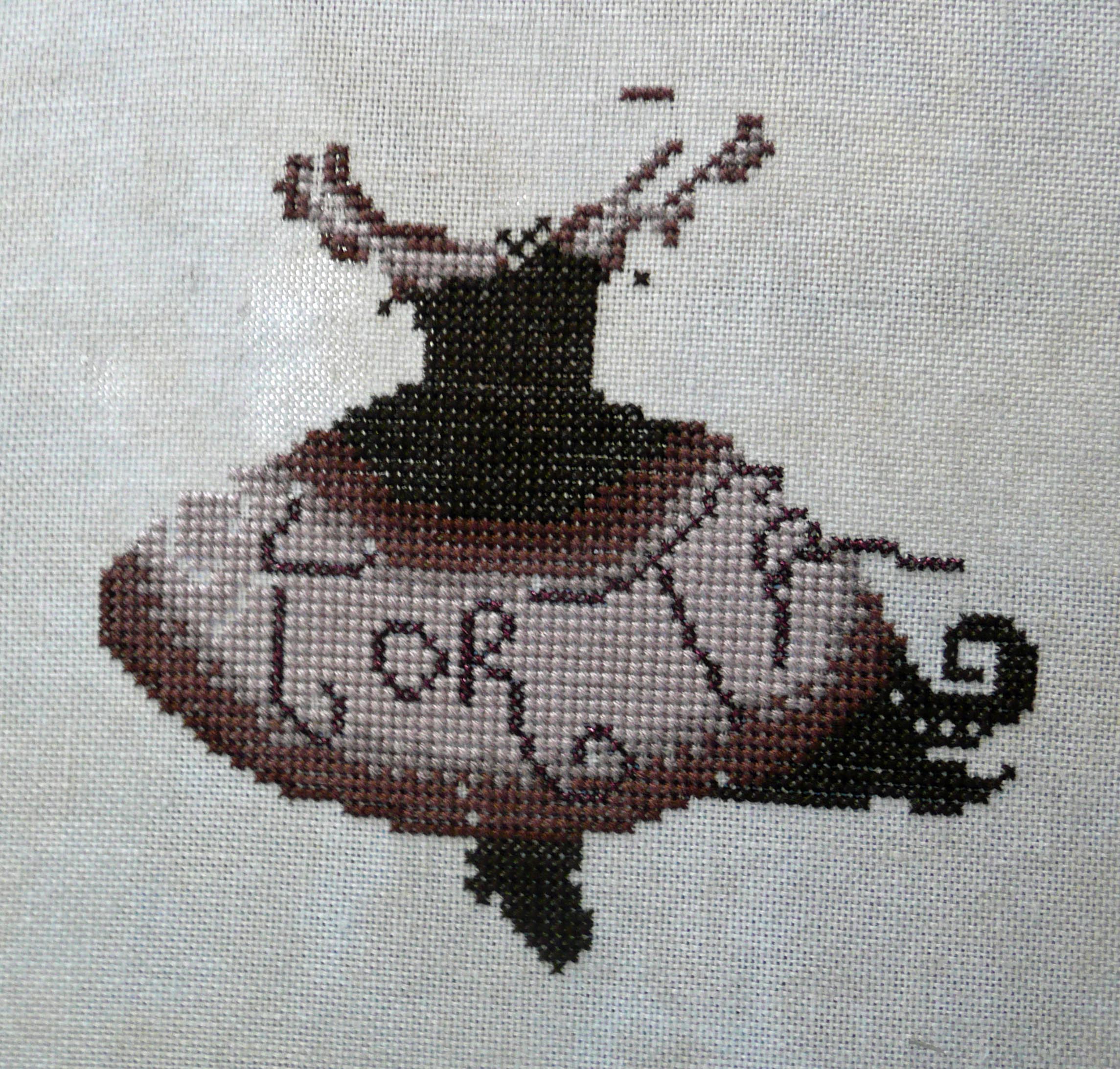 Another week has gone by, and not much stitching has been completed in that time – the only thing I’ve been working on this week has been my Halloween Fairy with a few more stitches put in Mon-Thu this week. I’ve made OK progress on this one, but it’ll be a few weeks yet before she’s finished (not just stitching-wise, but I realised I’m missing two Kreinik braids which I’ve had to order and wait because they’re out of stock – I had a store credit to use up with Needle in a Haystack, so I decided to put it to good use with my braids). I have to admit I’m enjoying stitching her with her decent sized blocks of colour 🙂