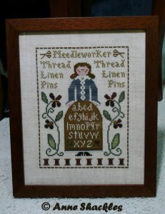 Sampler Lady framed