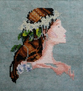 Then the other UFO/WIP to be dragged back into daylight is Mirabilia’s Enchanted Mermaid – this poor love hasn’t seen daylight for an awfully long time … I can’t remember the last time I dragged her out to be worked on.  Anyway, she’s had a tiny bit of love in February and is getting closer to having her backstitching done on her face so she doesn’t look so dreadful (her cheek looks like it has a terrible skin disease!!).  I may also start beading as I go, which just may give me a kick in the pants to stitch on her some more.