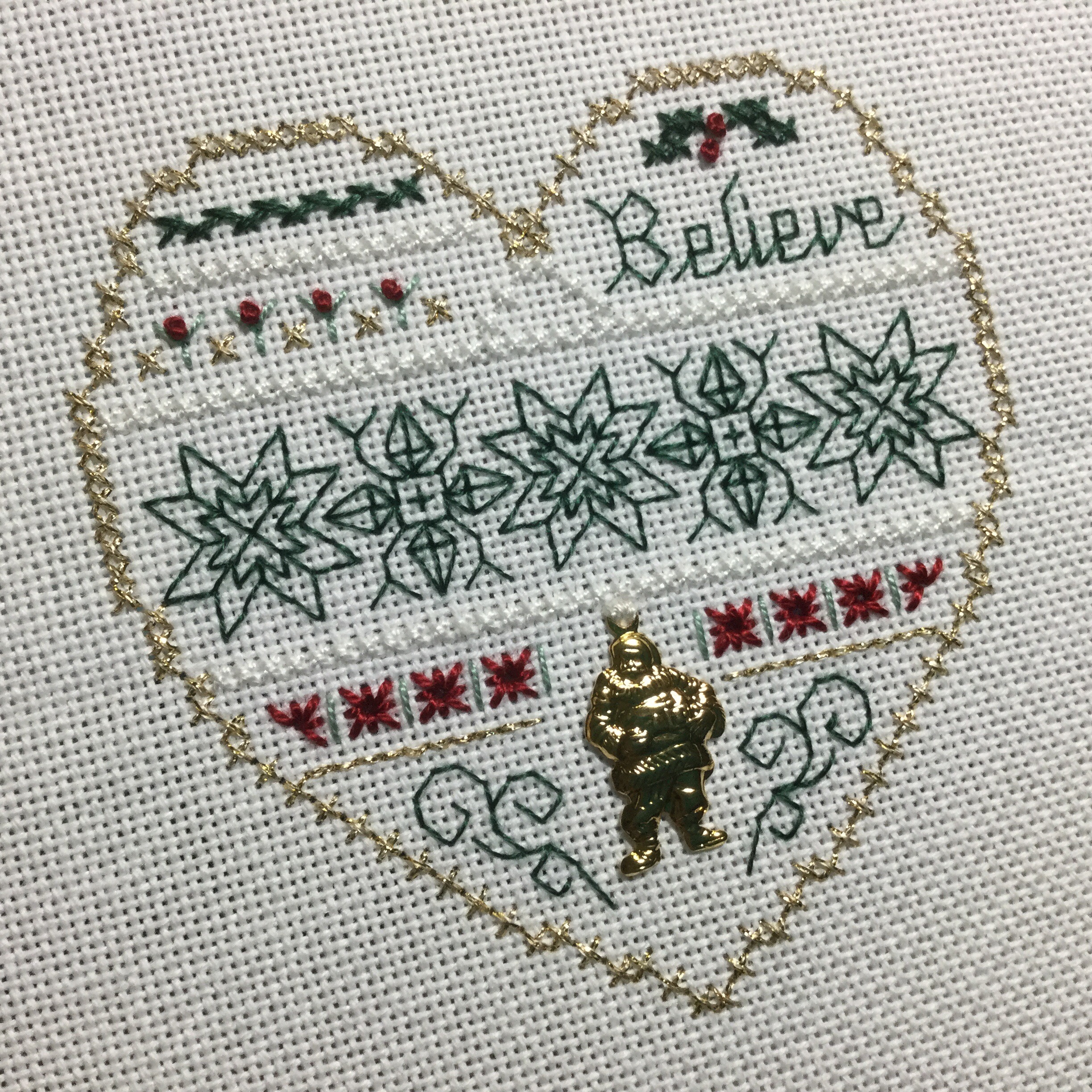 I seem to be on a roll with Christmas stitching! First up I managed to totally finish a sampler I started in January for the Crazy January Challenge. I thought I’d stitch on something easy for a while but I ended up making more mistakes in this one than anything I’ve stitched all year!