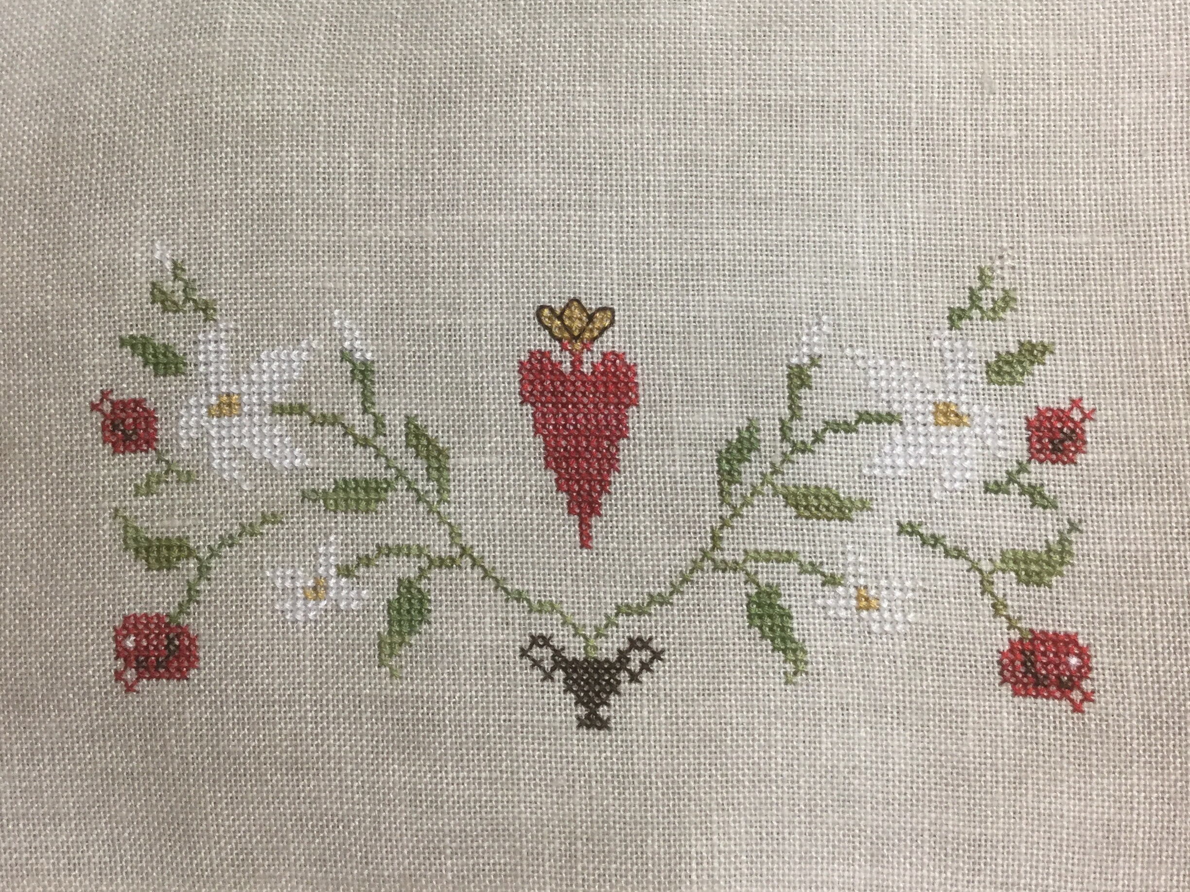 Well I did say it was a small start … haha.  I’ve actually done a wee bit more since then, although at my current rate of progress it’ll probably be another week away before this one is finished.  It’s stitched on 36ct hand-dyed linen with one strand of thread, and I’m feeling my age when I’m stitching this one at the end of a long business day staring at a computer screen …