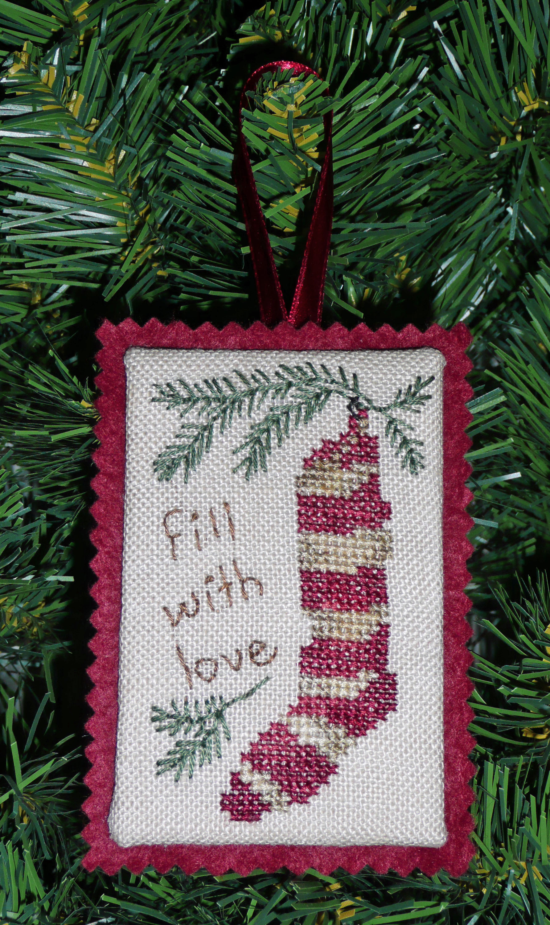 And this week’s “one I prepared earlier, stitchy/crafty content” is “Fill with Love” ornie: