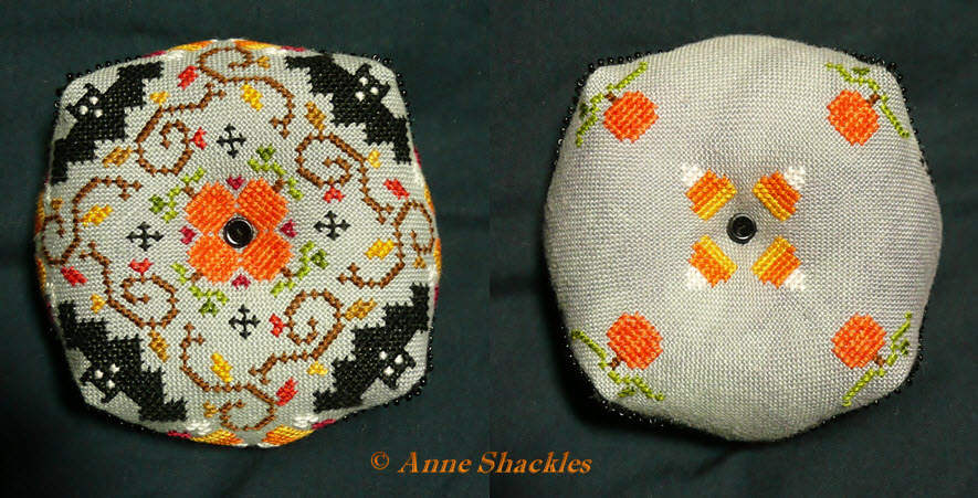 Not as much stitching done all up as I’d like over the last month, although I’d thrilled to show that I did manage to get one 2-year-old UFO out of the “hiding in shame basket” and back onto the Qsnaps … over the last month I not only managed to put the final stitches into it, but last night I even finish-finished it! I also stitched a little scissor fob to match it yesterday, but it’s still not sewn together yet. I hope to do that over the next day or so though 🙂