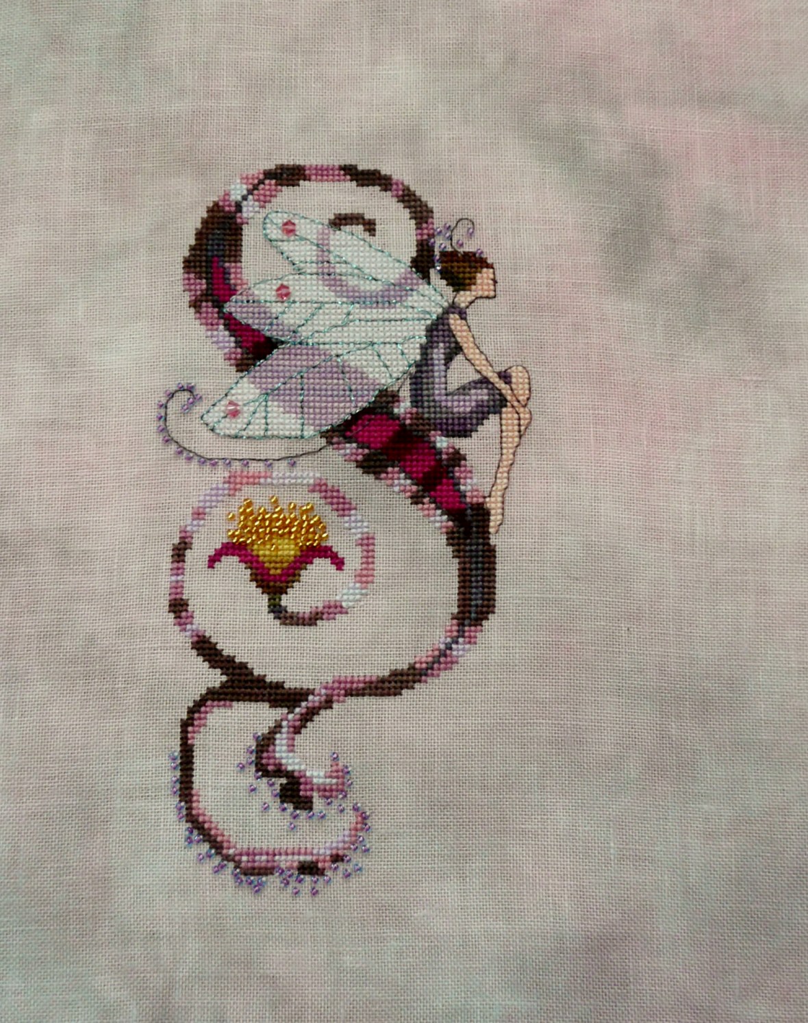 Stitched on 32ct “Secret” hand-dyed linen by Steph’s Fabbies