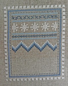 After finishing my exchange piece, I started a new Christmas ornament from an old JCS issue that I’d already got kitted up from a couple of years ago – I made an OK start into that one while watching TV last night … and I’ll put a few more stitches into it tonight.