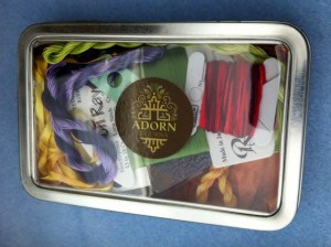 The only other thing I have to share is a wonderful surprise parcel in the mail I received from Orna Willis – I’ve been a fan of Orna’s canvaswork designs for years now, and have been a follower on her blog since she started it up. Orna has recently been having giveaways of thread/embellishment packs for some of her followers (just chosen randomly from the list of followers), and I was surprised one day to see my name up in lights on the blog … I had won one of the giveaways. I just had to take a photo of the way that everything was packaged up, aren’t they lovely in their own special little tin? I should probably take a photo of the contents separately as there are lots of little treats hiding in that tin, but I’ll do that on the day that I take them out to put them away 🙂