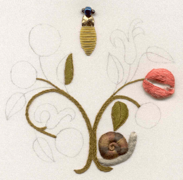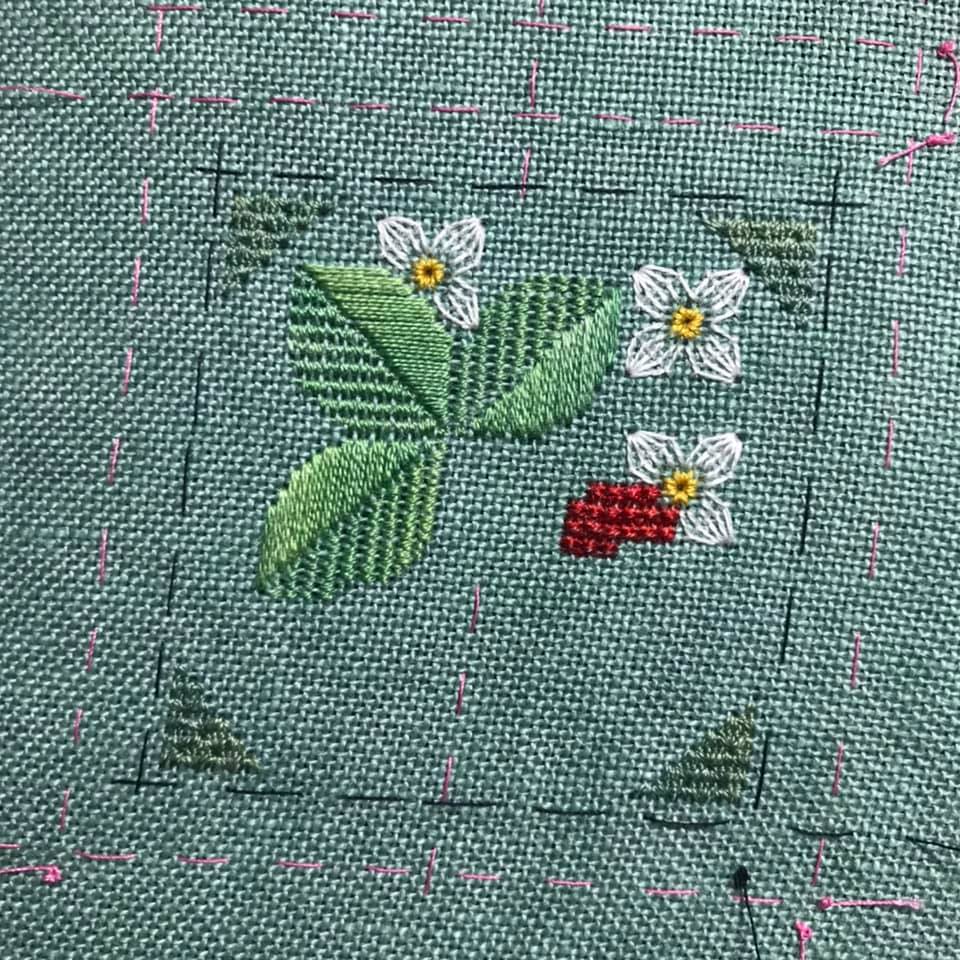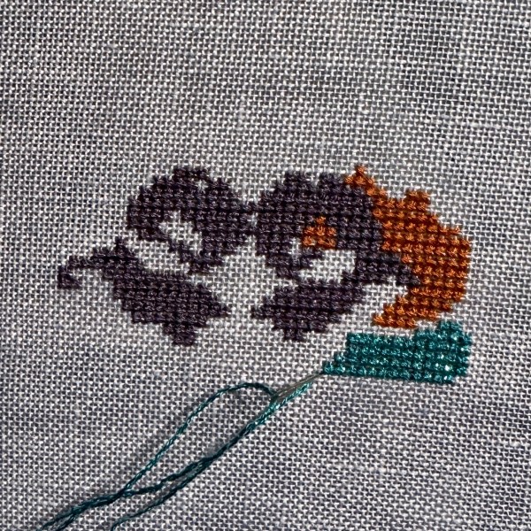 I used to detest French knots that I’d do anything in my power to avoid them – either replacing them with Colonial knots or using a petite bead etc. After trying them when the fabric was tautly held in a hoop or Qsnap and attached to my floor or lap stand, all of a suddent they became less daunting and I managed to master them. I learnt that sometimes it just needs perseverance to find a method that works for you individually, then the world is your oyster – I no longer shy away from any stitch, although I’ll admit bullion knots/stitches are the main one that I’ll avoid if I can because I simply don’t enjoy doing them. French knots, though? They’re like a long-lost friend that I enjoy catching up with every now and then 🙂 One of the reasons that I love doing counted canvaswork, they’re filled with unusual and fun stitches, and it pushes me out of my comzort zone to try new things.