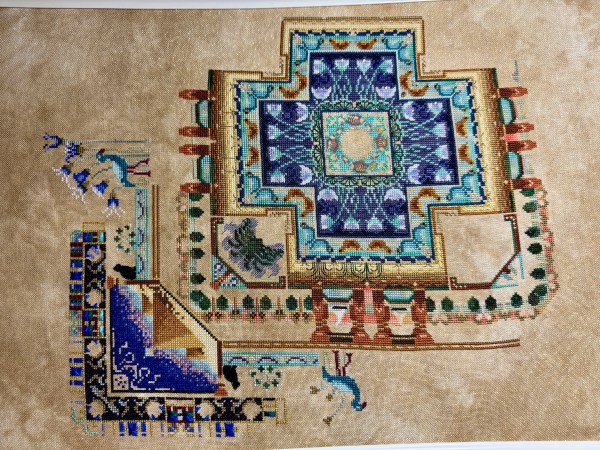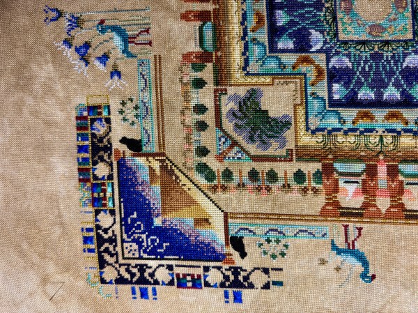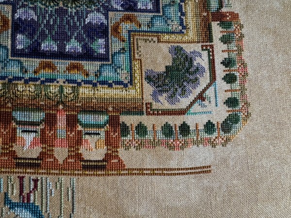 Working very slowly on the bottom right corner – the fabric is so difficult to work on, it’s taking me a long time to make progress. I did manage one full rotation of 1,000 stitches on it, though, this month … although I was super happy when the rotation slot was finished and that I don’t need to look at it again for a number of weeks.