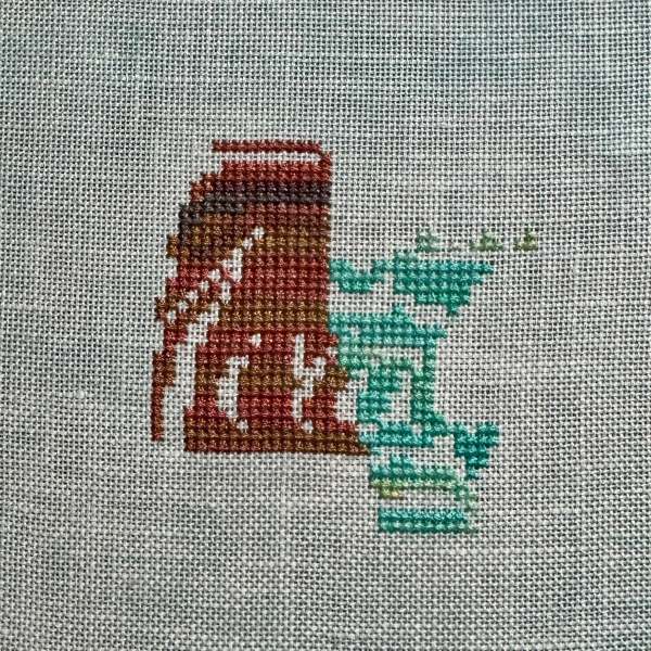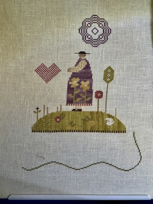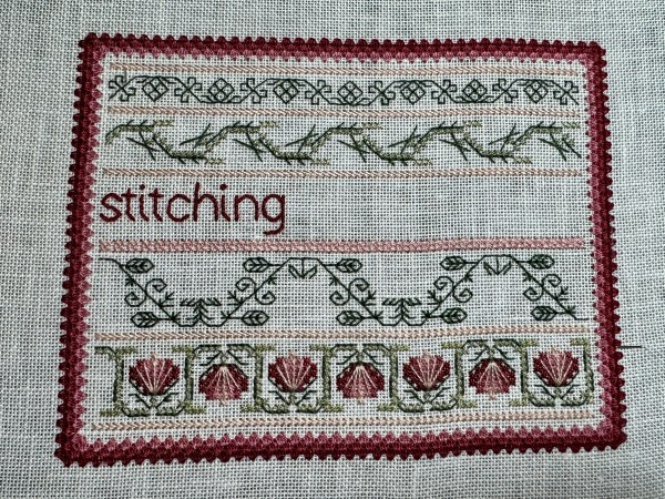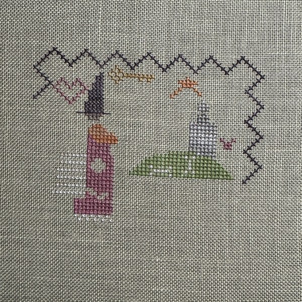 I almost completed the wording this month – just one ‘b’ left to go. I ran out of the original hand-dyed thread I used in the header, then used 3371 as charted instead which is vastly different, so in the future I’ll need to unpick the header and the tree and start again before I can call this one finished. In the meantime I’ll keep chipping away at it until that’s necessary.