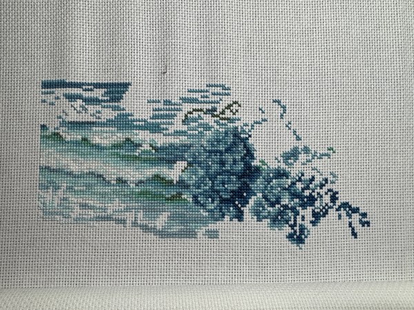Sea view” by Luca-S – this was supposed to be my birthday new start but I totally forgot it was my birthday (!) and then felt too flat to stitch. I managed around 200 stitches in early March then realised I needed to frog about 1/4 of it so it’s currently in the naughty corner … it did give me enough stitches for Shells in Scattergories though.