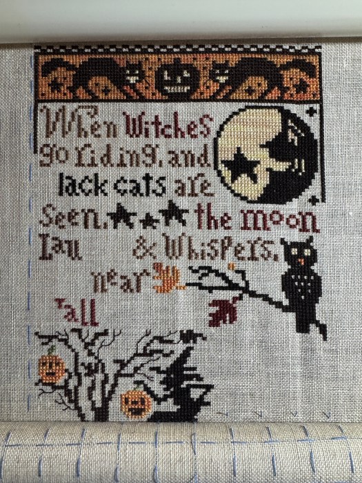 Really loving this piece to work on – my fabric substitution of a 28ct linen was such a good choice (I really dislike stitching on perforated paper), and the colours are such a joy to work with. It’s actually really hard to put this one down, I have to admit. Maybe once Halloween is over, and Three Kings is finished, I might move this to be my focus piece to get it finished.
