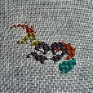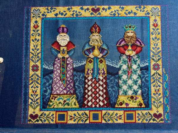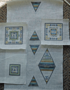 Original chart called for Madeira stranded cottons, but they are difficult to find in NZ, so I replaced the colours with DMC instead – Started 1998