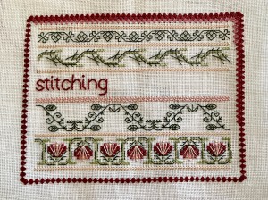 Printed in Anne’s Glory Box Book Nine, but taken as a 4-week class project. Class project over 4 weeks at La Chatelaine, Mt Eden – tutor Monica M Hunt (the original designer). Wonderful chance to see her collection (via photos) of hussifs stitched over the years. Started 2001.