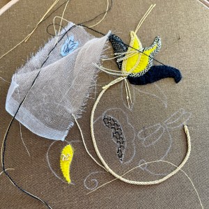 Class held at La Chatelaine, Mt Eden – tutor Elizabeth. Class taught the main elements of stumpwork stitching, but remainder of project to be completed at home.